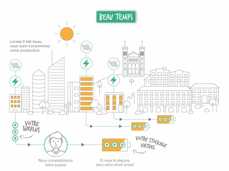 Une partie de l’électricité produite est consommée l’autre donnée ou stockée avec les possibilités suivantes :