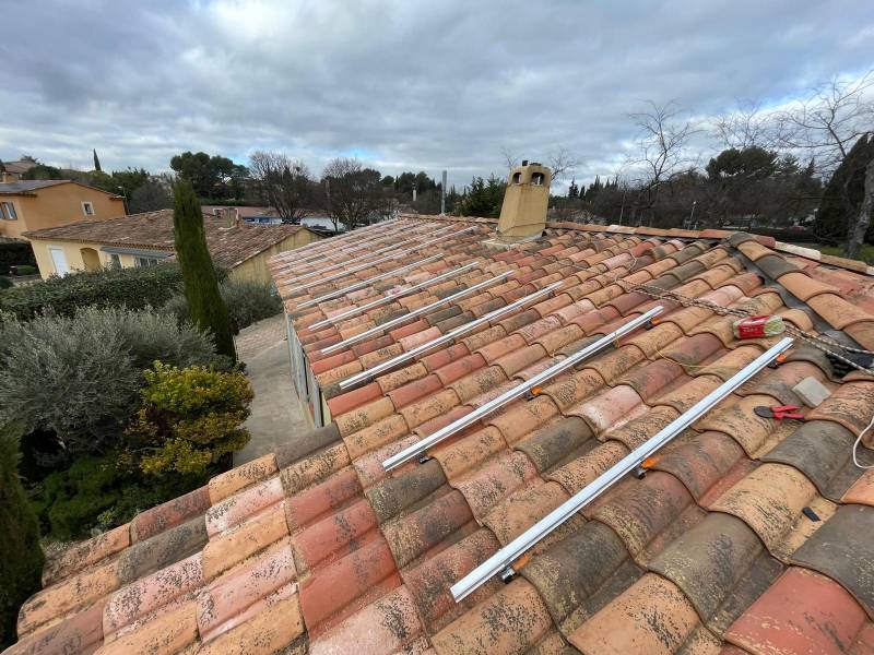 Lundi matin, nos techniciens, mettent en place les structures nécessaires. Chaque membre de l’équipe joue un rôle clé : l’un s'occupe de l'installation des rails de fixations des panneaux, tandis qu’un autre assure le cheminement des câbles, puis pour finir le raccordement des panneaux aux micro-onduleur et la passerelle sur le tableau électrique. Grâce à une coordination sans faille, le processus avance rapidement.