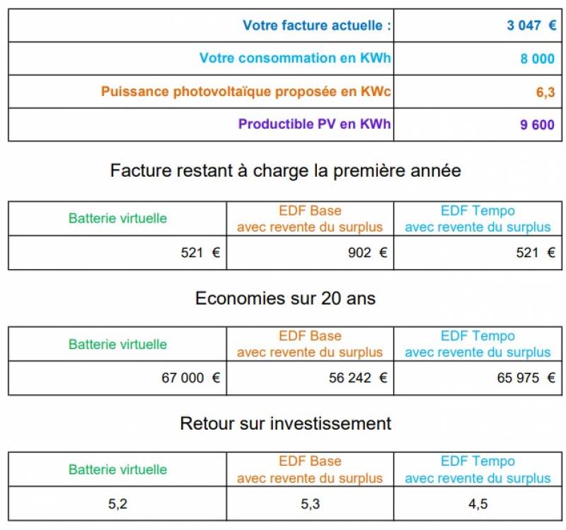 Notre installation de 6 kWc en autoconsommation monophasée est rentabilisé en moins de 6 ans, voyez plutôt la simulation de facture ! A la prise de RDV notre assistante vous demande des informations permettant de réaliser une pré-étude gratuite dan laquelle se trouve la simulation de facture, et d'autres documents vous permettant de faire votre choix.