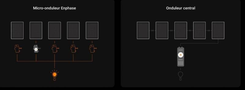 Comme les précédents, ils sont installés suivant une architecture distribuée ce qui veut dire que si un micro-onduleur tombe en panne, les autres continuent à produire sans interruption ce qui n’est pas le cas avec un onduleur central.