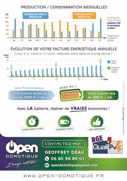 Avec Open Domotique et notre label RGE QualiPV depuis 2019, vous profitez d'une expertise reconnue, vous permettant d'accéder à un contrat de batterie virtuelle.